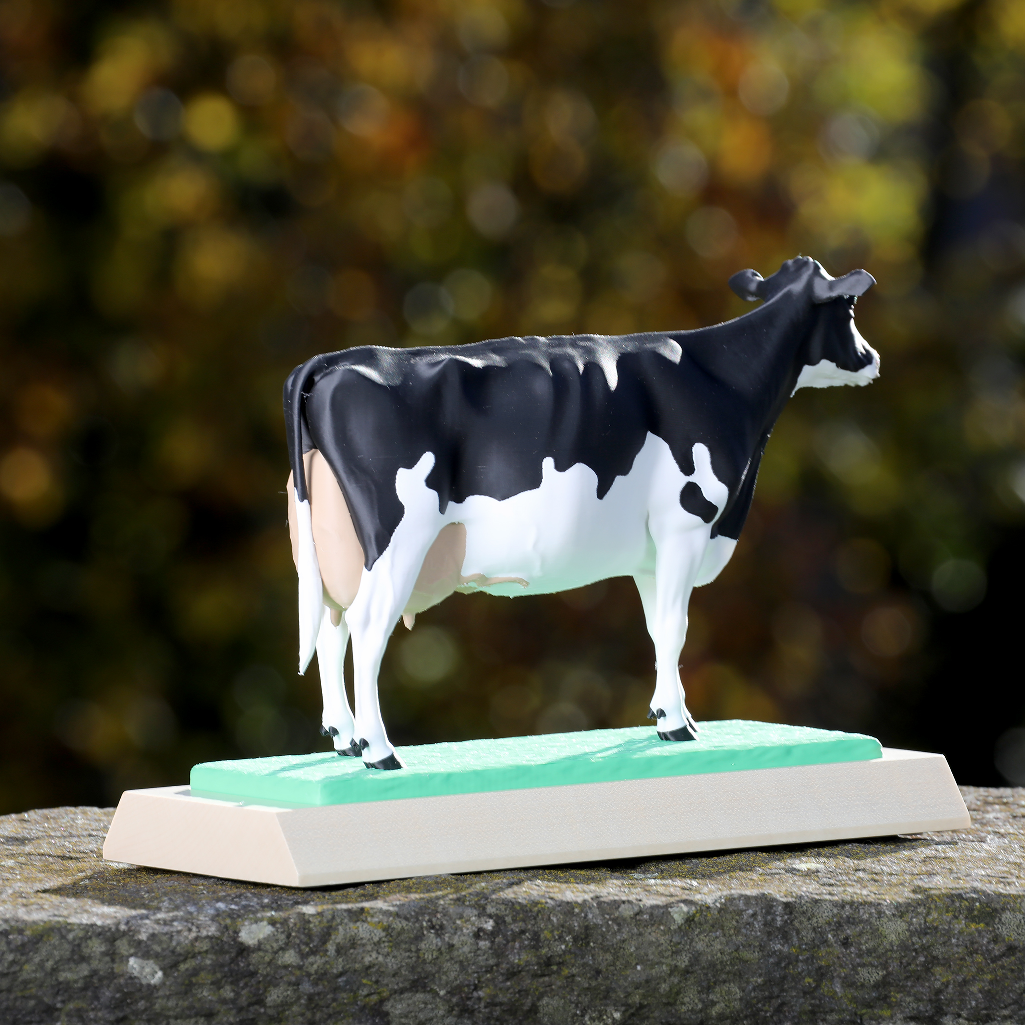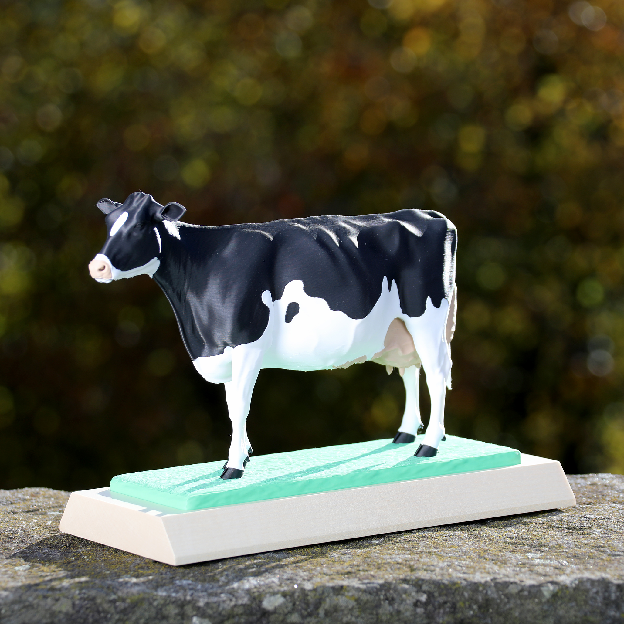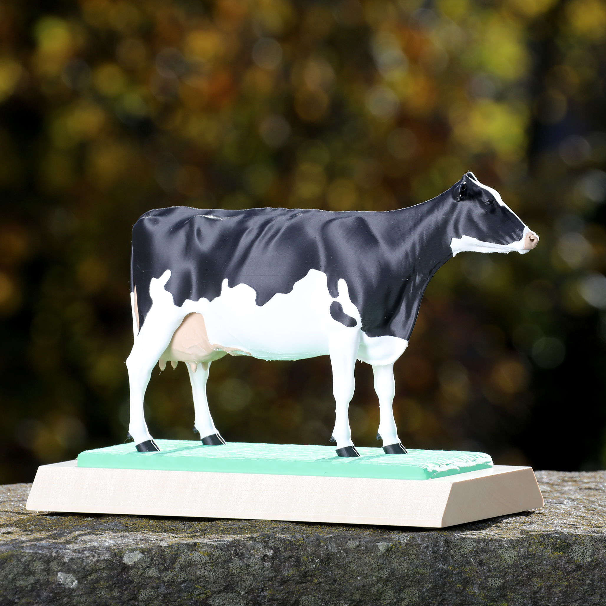 Socle en bois et vache en PLA (Plastique biosourcé)