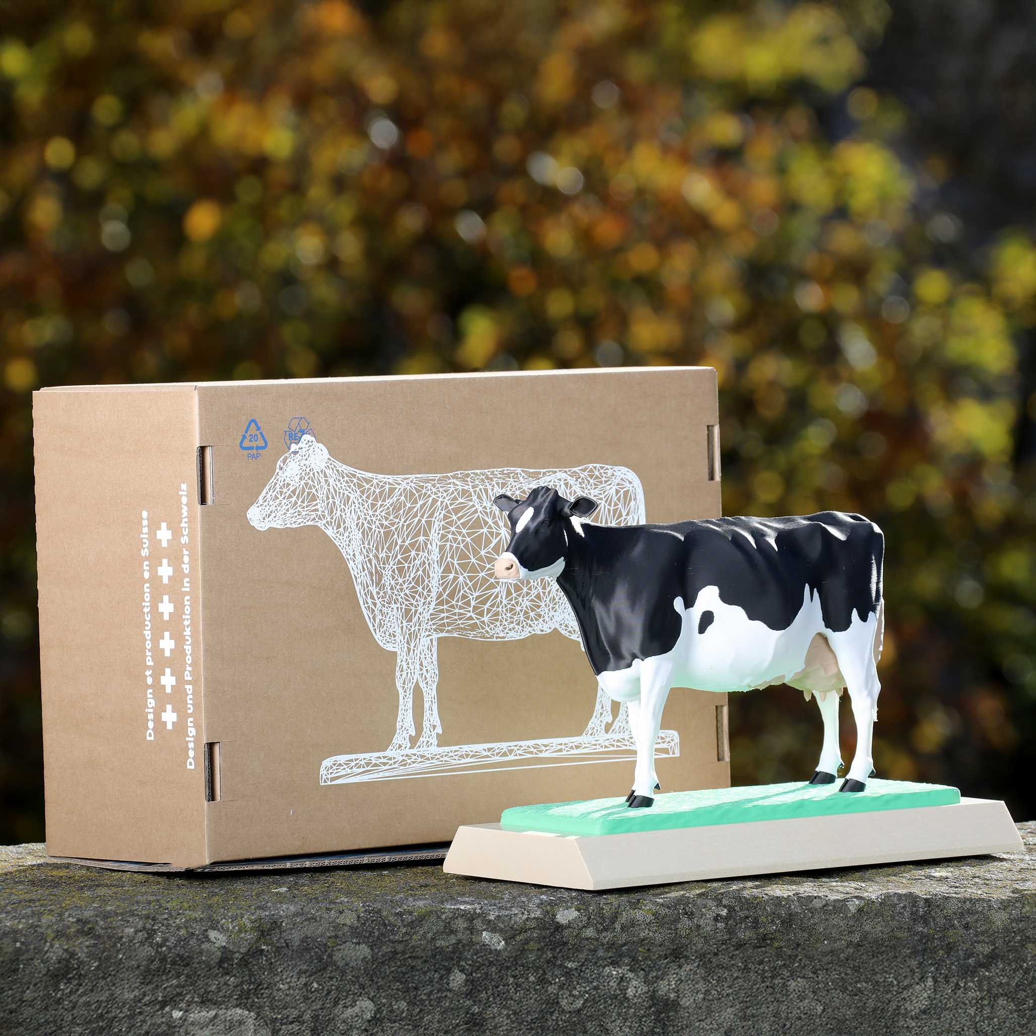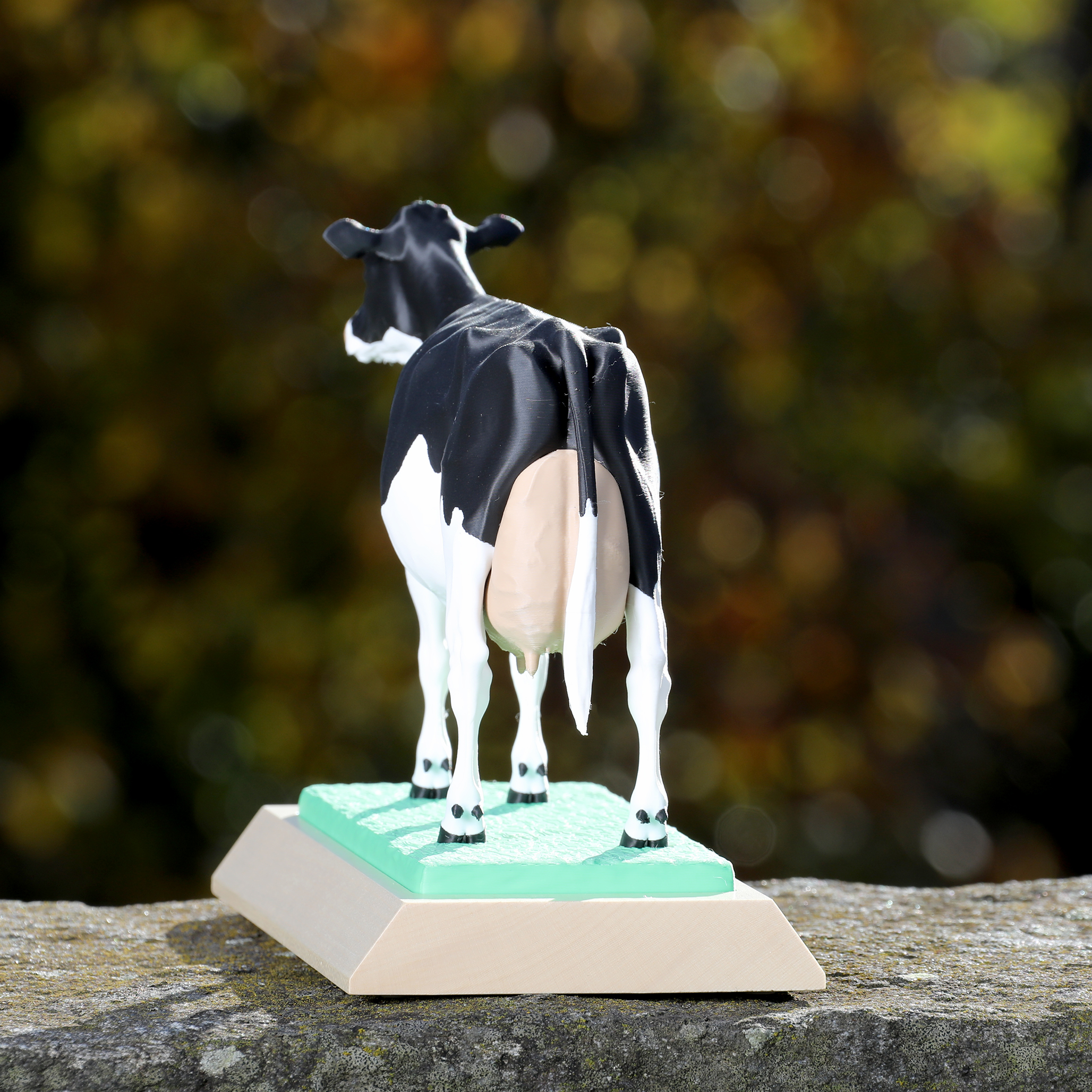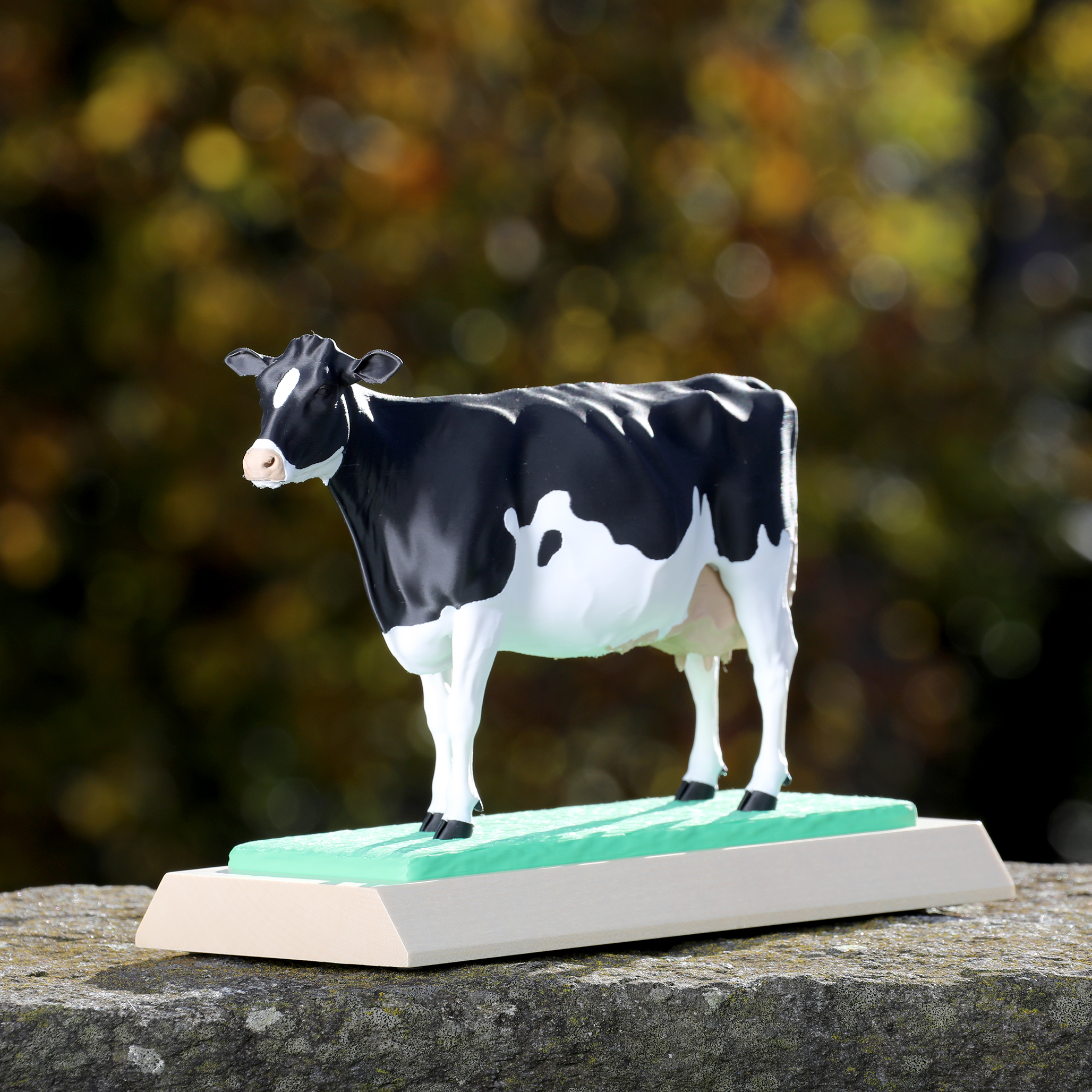 Socle en bois et vache en PLA (Plastique biosourcé)